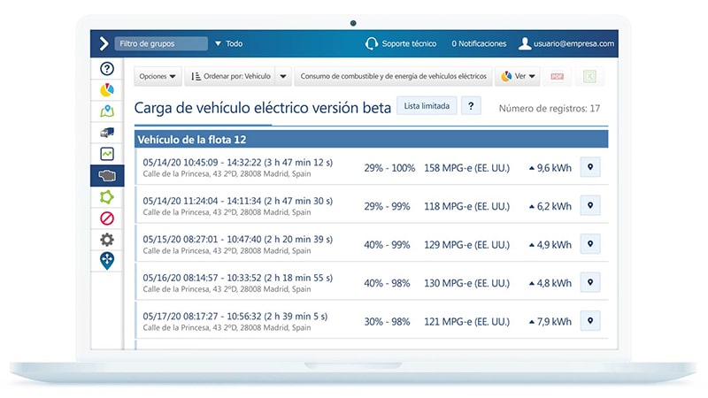 - Si se carga un vehículo durante ese tiempo, se puede enviar una notificación al administrador de la flota.